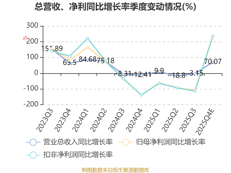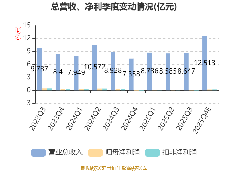 据公告,当前,公司所处行业竞争态势持续加剧,市场价格压力逐步传导至公司各主要业务板块,导致报告期内公司整体毛利率出现下滑态势。在此背景下,公司三大业务虽保持正常稳健经营,但盈利空间均受到不同程度挤压,进而影响了报告期内的净利润表现。其中,中低压成套设备业务因本期暂无同期大规模项目执行,未能形成相应的项目规模效应,该业务单产品毛利同比下降幅度较为显著。整体来看,公司全年业绩虽受上述因素影响有所下滑,但公司积极应对市场变化,四季度经营态势已出现积极改善,业绩较前三季度实现转好,经营基本面呈现逐步修复的良好趋势。