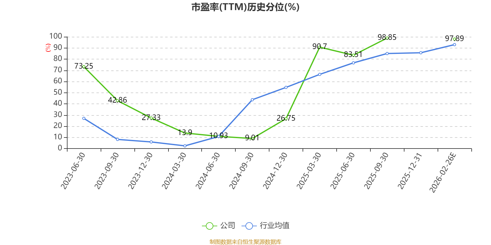 市盈率、市净率为负时,不显示当期分位数,会导致折线图中断。