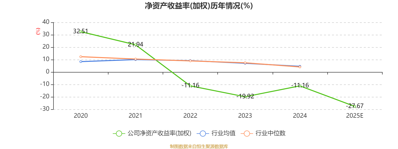 数据显示,2025年公司加权平均净资产收益率为-27.67%,较上年同期下降16.51个百分点。